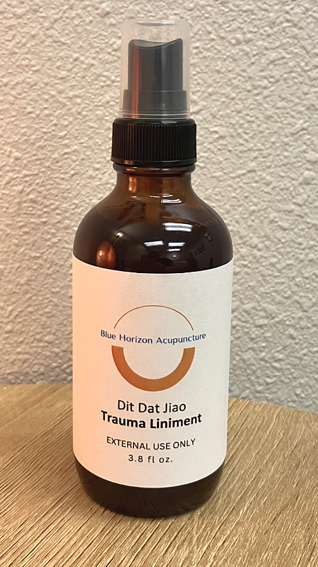 Dit Dat Jiao Trauma Liniment is our small batch brewed liniment used in our clinic for muscle / ligament / joint pain, sprains, bruises, fractures, arthritis, bug bites, dental pain and much more. Its history is used in Mixed Martial Arts to help with bone bruising and sprains. For external application to reduce / kill pain, reduce swelling and break stasis.